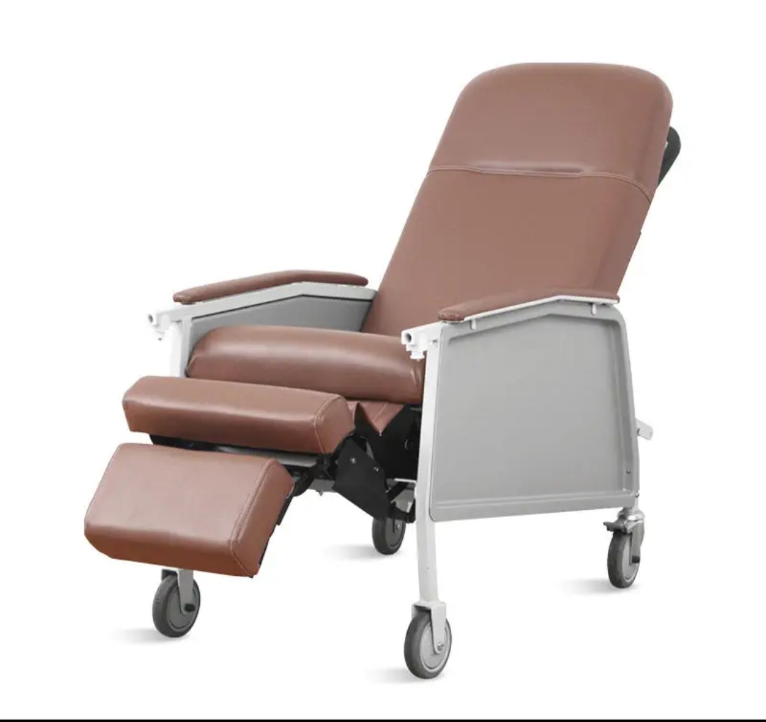 The reclining geriatric chair combines comfort and functionality. It comes with a contoured, padded backrest that can recline up to 35º, automatic elevating footrest, stowable non-slip lap tray and a safety belt for additional security. It is easy to clean and convenient to move around the house.